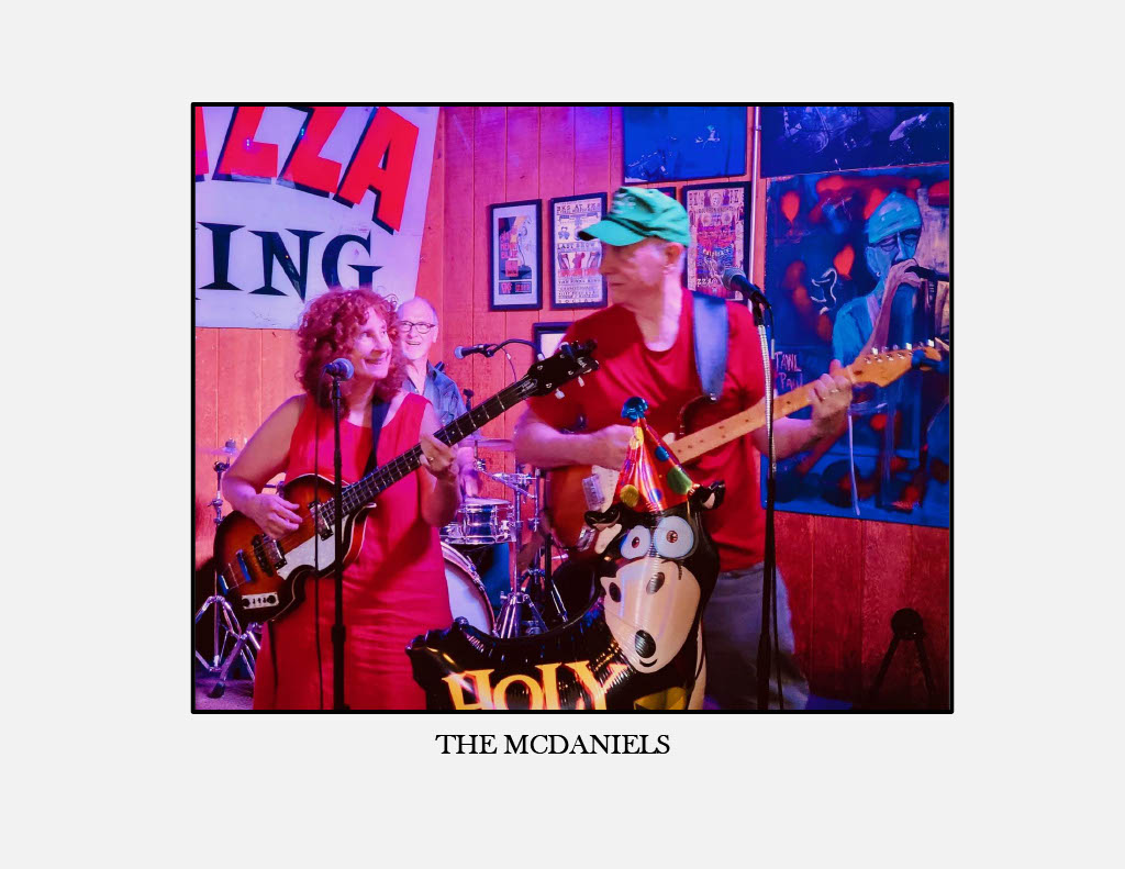 The McDaniels play their own unique take on Americana: A mixture of rock, blues, country, swing, and folk–sometimes all in the same song. The group is Dorothy McDaniel on bass, flute, and vocals, Kent McDaniel on electric and acoustic guitar and vocals, and Charlie Morrill on percussion and vocals. They sing three-part harmonies over rock solid grooves, combining individual virtuosity and great group chemistry.